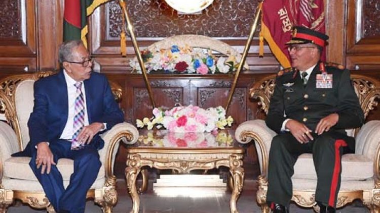 নেপালের সেনাপ্রধানকে বঙ্গভবনে স্বাগত জানিয়ে রাষ্ট্রপতি বলেন, বর্তমানে বাংলাদেশ ও নেপালের মধ্যকার দ্বিপক্ষীয় সম্পর্ক খুবই চমৎকার এবং এটি ক্রমান্বয়ে শক্তিশালী হচ্ছে।